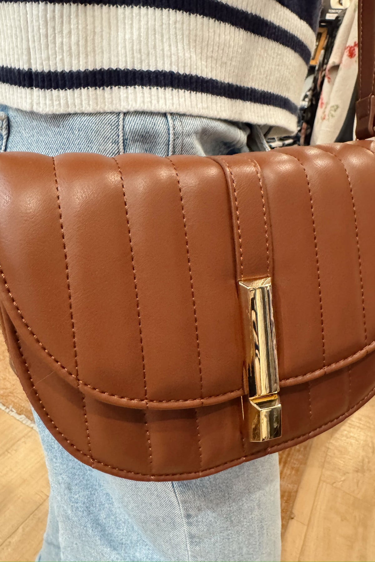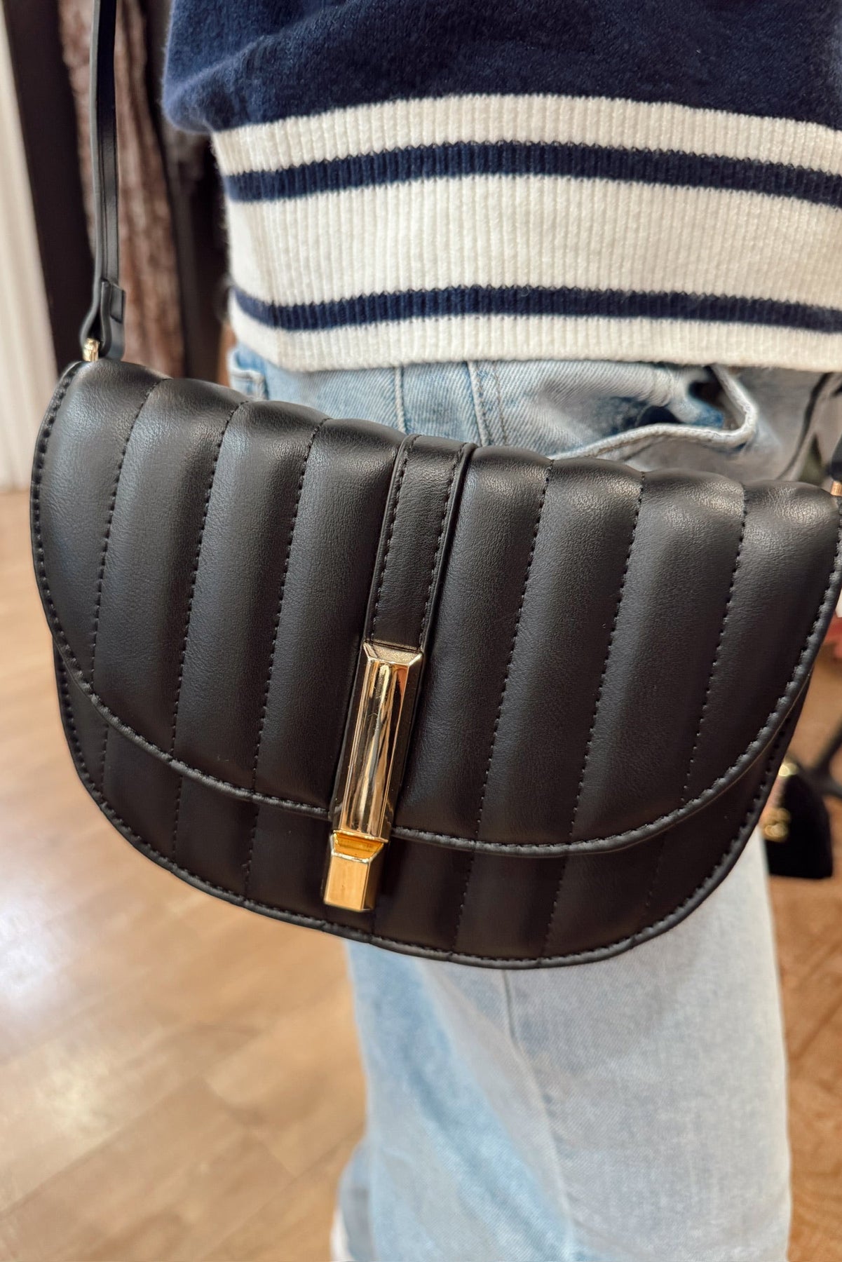Regular price $58.00 Save $-58.00The Quilted Front Flap Crossbody combines stylish design with practical functionality. Its quilted pattern adds a touch of sophistication, while the compact flap design keeps your essentials secure and accessible. Perfect for hands-free convenience, this crossbody bag complements any outfit, making it an ideal choice for both casual outings and special occasions. Elevate your everyday look with this chic, versatile accessory.