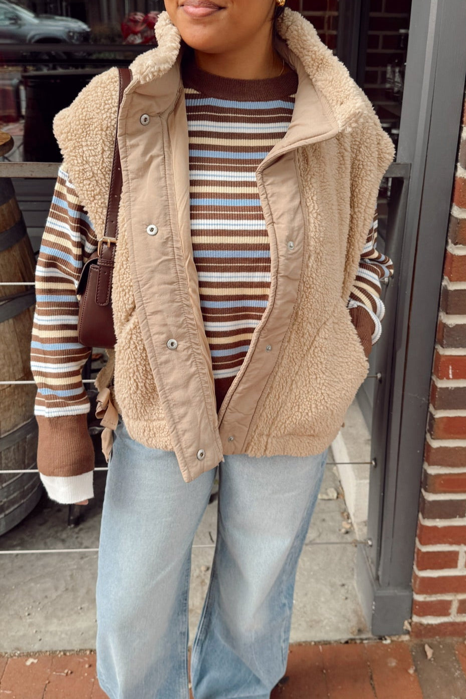 Regular price $72.00 Save $-72.00The Stanton Mikky Sherpa Vest combines warmth and style with its plush sherpa fabric. Expertly designed with a secure button closure and an adjustable tie detail, this vest offers a tailored fit while retaining cozy comfort. Ideal for layering, it provides both insulation and easy wearability for cool weather conditions.