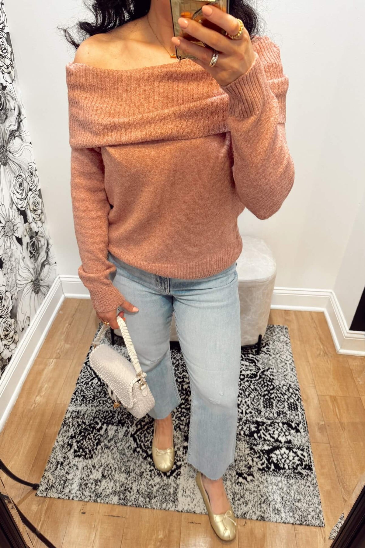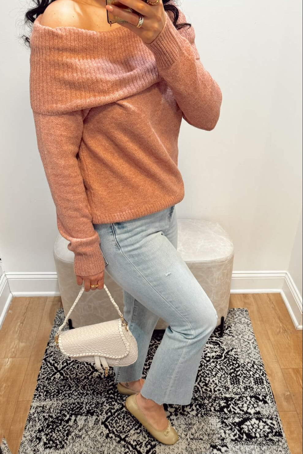 Selfie Size & Style Guide: Nina is 5'5 wearing a size 28 paired with Stanton Snowelle Sweater and accessorized with the Raising Surfers Janelle Necklace.
